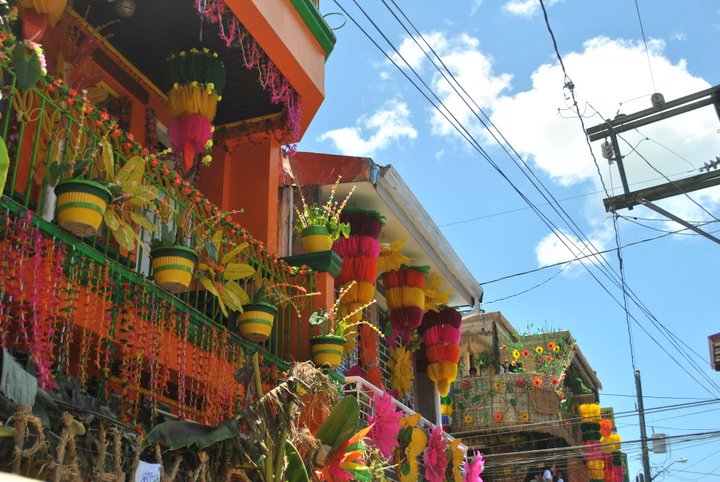 During this festivity, the residents adorn their houses with colorful “kipings” a brightly-colored paper-like stuff made of rice paste (yes, you can actually eat the decorations. hehe. .) Aside from the kipings, the residents also make use of fresh fruits, vegetable and root crops in decorating their houses. creativity plays an important role of course. . 🙂 and to make the festivity more flamboyant, a competition is held for the best decorated house title.