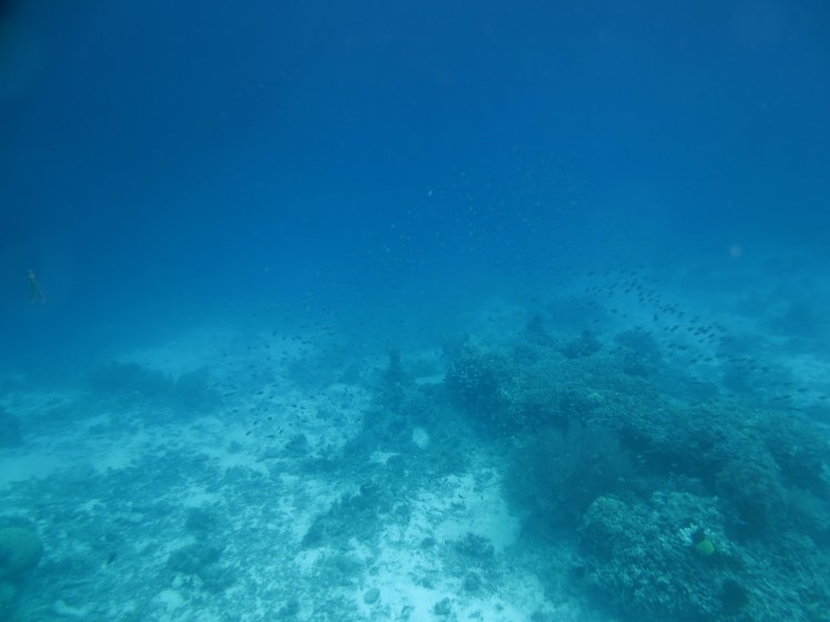 We have island hopped from Panglao and went to a popular snorkeling area. From a small island away from Panglao, we then rode a very small rowing boat as fishemen’s boat are not allowed at the snorkeling area coz the water is too shallow, the propellers might destroy the corals. I really loved seeing lots of fishes! I felt a subtle pleasure while feeding them with bread. I loved sight of many corals so close to me, I got scared though when I saw an edge. It’s like an underwater cliff, I tried to take a glimpse of what could be beneath it, but all I saw was infinite depth. I imagined a monster coming out from it. haha. . Sadly, there was a storm coming when we snorkeled, so the coast guards instructed all boats to return to Panglao. We have not even saw the island for half a day. 😦 Going back, the winds were too strong, and its coldness gave us chills. Luckily, we braved the strong waves, but of course it came with a lot of screaming! I bet the boatmen got confused whether to focus on maneuvering the boat or try to calm us. haha. .