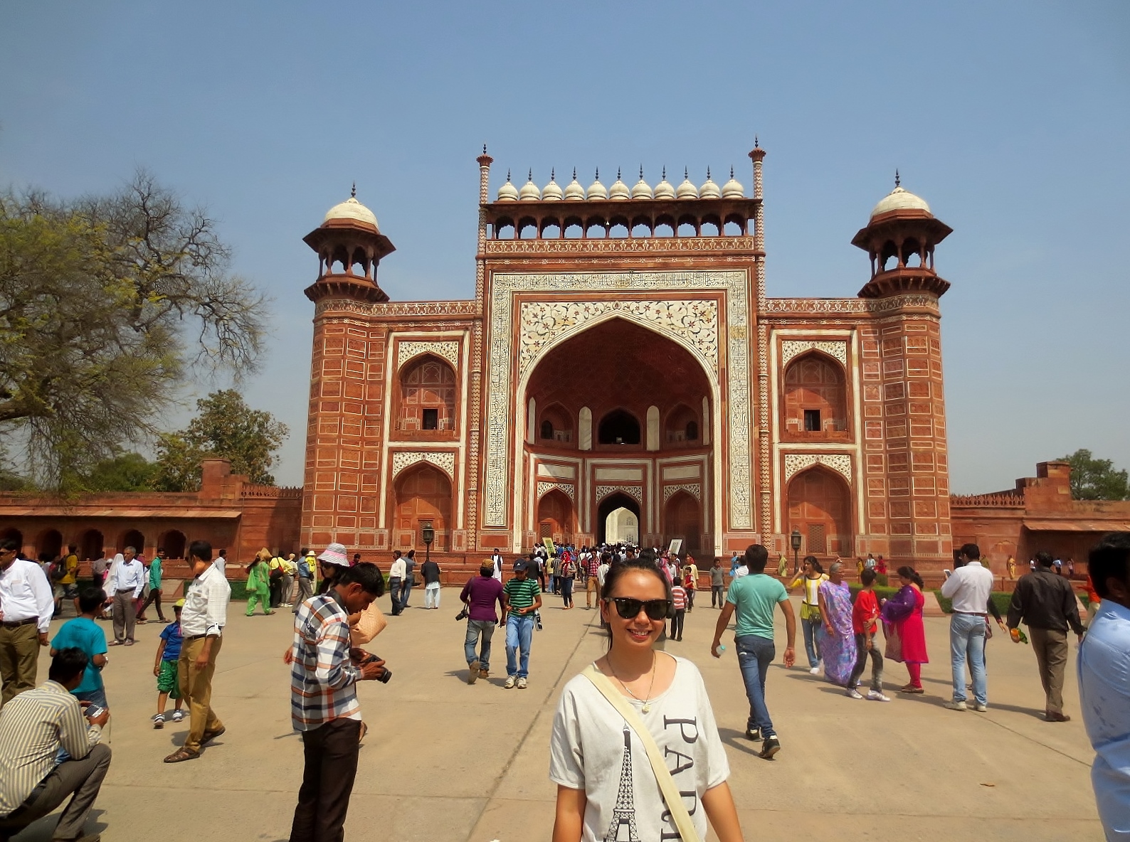 We reached Agra in the late morning. For a while we’ve lost our paranoia and the little 7-year-old souls in us were excited to see the Taj Mahal. The gates of the Taj are already mesmerizing on its own with the red walls, Arabic calligraphy and all. Before we finally see the famous Taj Mahal, the tour guide gave us a little background about this awe-inspiring white marble mausoleum which I find really interesting. Love stories of ancient times never ceases to melt my heart. Story of people’s struggles and hard work with very limited resources and machinery during the construction of an unbelievable architecture are just what make it’s history so interesting. The tour guide asked us to close our eyes while we walk a few steps from the gate. This drama just added my “I WANNA SEE IT, I WANNA SEE IT NOW!” screams in my head.